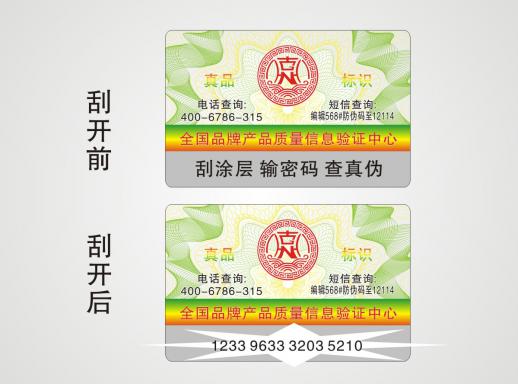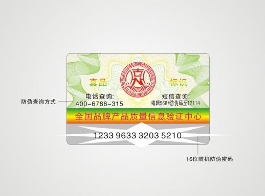 消費者在購買已加入數(shù)碼防偽系統(tǒng)的企業(yè)所生產(chǎn)的產(chǎn)品時,在產(chǎn)品的包裝上均可看到數(shù)碼碼防偽標(biāo)識。只要揭開標(biāo)識的表層或刮開標(biāo)識的涂層,就可以看到一組由16位數(shù)字組成的密碼,此密碼是唯一的,只能使用一次。
