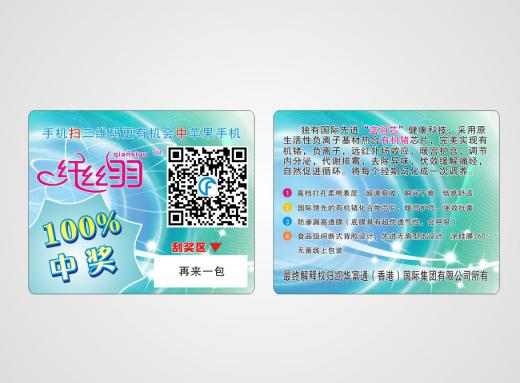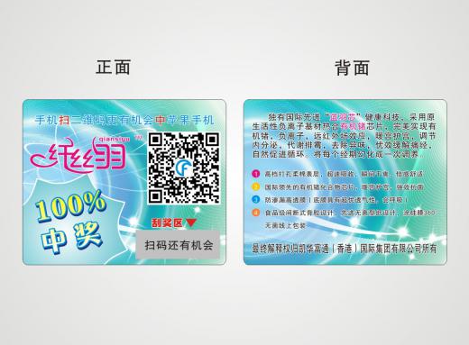 刮獎卡廣泛應(yīng)用于各類優(yōu)惠有獎活動中,是拓寬產(chǎn)品銷路提高銷量的上佳方法。該類卡核心工藝在于可變數(shù)據(jù)的印刷和刮刮銀區(qū)域的處理,可變數(shù)據(jù)一般以阿拉伯數(shù)字、英文字母、中文漢字的形式制作;刮刮銀通常以絲印或者貼標的方式制作,兩種方式對數(shù)據(jù)的安全性都有良好的保證。