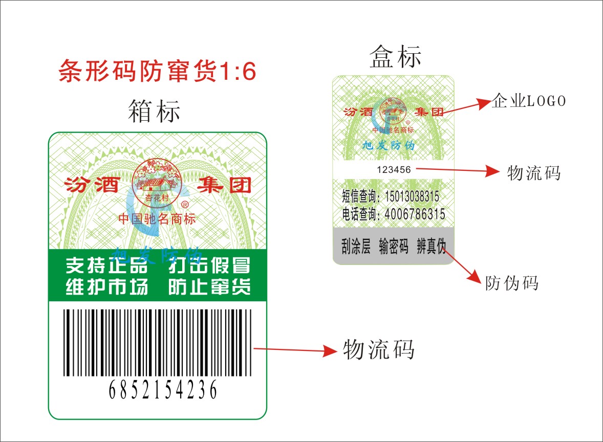 防偽防竄貨標(biāo)簽在出廠前就確定了對(duì)應(yīng)關(guān)系,每枚大標(biāo)(即為帶條碼的箱標(biāo))對(duì)應(yīng)了數(shù)枚小標(biāo)(盒標(biāo)、瓶標(biāo)等);例如:一件大包裝的產(chǎn)品內(nèi)共有6件小產(chǎn)品,則在該產(chǎn)品的大包裝上貼1枚帶條形碼的標(biāo)簽,然后在小產(chǎn)品的包裝上貼上相應(yīng)的小標(biāo)簽(6枚小標(biāo)不帶條碼,大標(biāo)和小標(biāo)的對(duì)應(yīng)關(guān)系在標(biāo)簽出廠前就確定了對(duì)應(yīng)關(guān)系),然后通過(guò)旭發(fā)防偽提供的防偽物流一體化軟件將產(chǎn)品的發(fā)貨地點(diǎn)、發(fā)貨時(shí)間、發(fā)貨人等信息錄入電腦上。這樣在商品的流通過(guò)程中,廠家只要知道大標(biāo)的條碼序號(hào)或小標(biāo)的防偽號(hào)碼就可以輕易的知道該商品的原本流向區(qū)域,從而確定商品竄貨與否。該方案適用于那些產(chǎn)品包裝分類(lèi)比較單一的廠家。