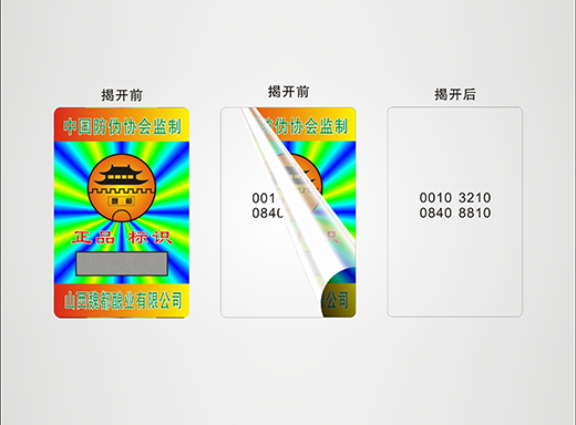 編碼印在涂層的下面,在涂層沒被刮開之前是保密的。(所有標(biāo)簽編碼都被涂層覆蓋,貼到產(chǎn)品上都是完好無損的,產(chǎn)品賣到消費(fèi)者手中后才可以被刮開查詢,在這之前是絕對(duì)保密的)