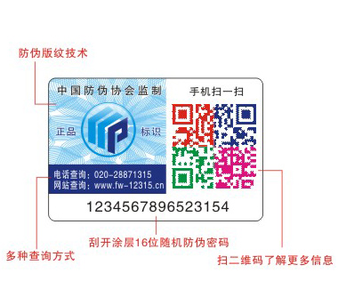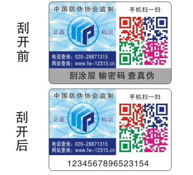 編碼印在涂層的下面,在涂層沒(méi)被刮開(kāi)之前是保密的。(所有標(biāo)簽編碼都被涂層覆蓋,貼到產(chǎn)品上都是完好無(wú)損的,產(chǎn)品賣(mài)到消費(fèi)者手中后才可以被刮開(kāi)查詢,在這之前是絕對(duì)保密的)