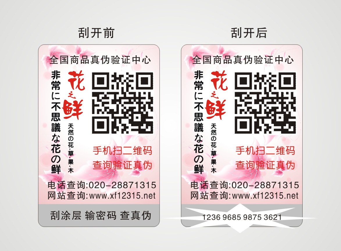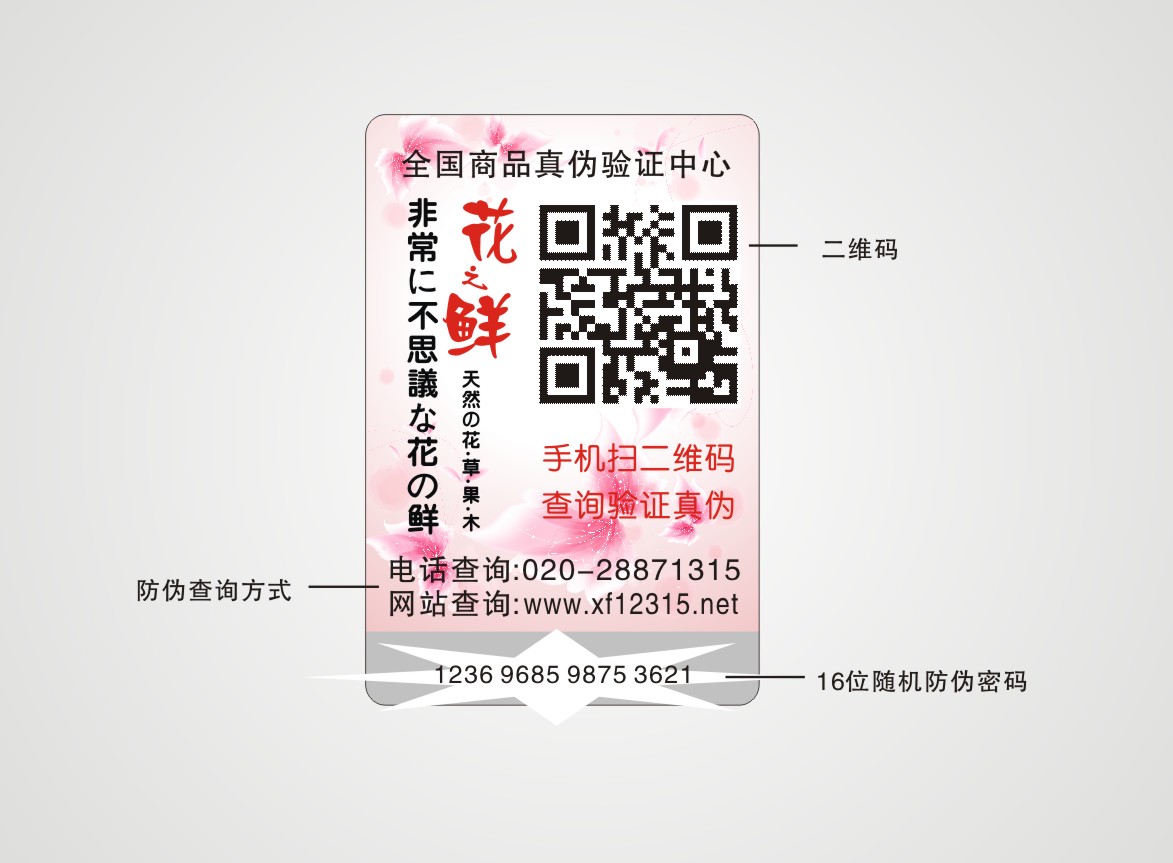消費(fèi)者在購買已加入數(shù)碼防偽系統(tǒng)的企業(yè)所生產(chǎn)的產(chǎn)品時(shí),在產(chǎn)品的包裝上均可看到數(shù)碼碼防偽標(biāo)識(shí)。只要揭開標(biāo)識(shí)的表層或刮開標(biāo)識(shí)的涂層,就可以看到一組由16位數(shù)字組成的密碼,此密碼是唯一的,只能使用一次。
